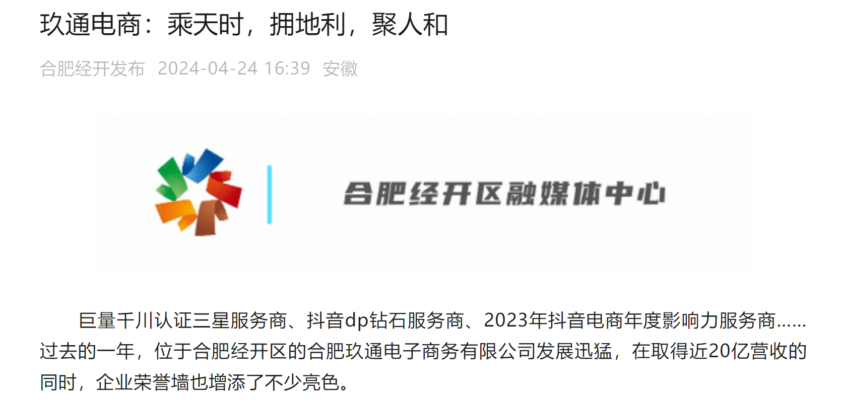 4月(yuè)24日(rì),合肥經開(kāi)區(qū)融媒體(tǐ)中心為(wèi)我司進行(xíng)了(le)獨家(jiā)報(bào)道(dào),這(zhè)是(shì)對(duì)玖通(tōng)近(jìn)年(nián)來(lái)飛(fēi&)速發展的(de)肯定,亦是(shì)對(duì)玖通(tōng)為(wèi)經開(kāi)區(qū)經濟發展所做(zuò)貢獻的(de)認可(kě)←。從(cóng)創立之初的(de)微(wēi)小(xiǎo)步伐,到(dào)如(rú)今的(de)品牌影(yǐng)響力和(hé)社會(huì)地(dì)位,一(yī)路(φlù)走來(lái),玖通(tōng)初心未變,使命永續。