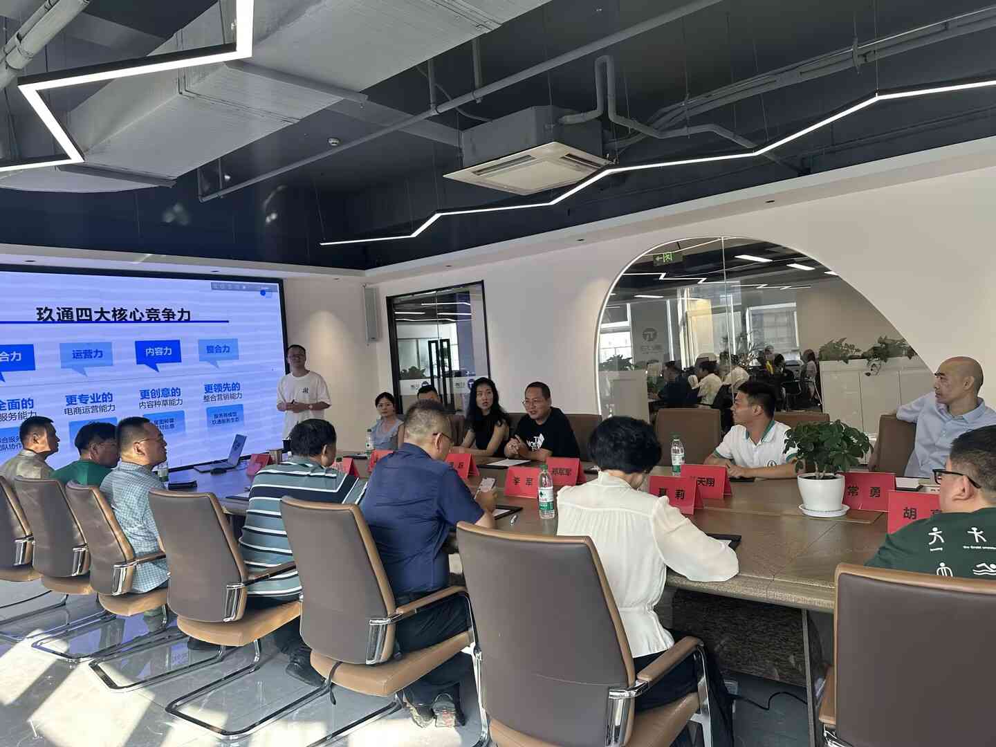 8月(yuè)5日(rì),省政府發展研究中心黨組成員(yuán)、副主任季翔,市(shì)電(diàn)商協會(huì)秘書(shū)長(chán•g)、安徽職業(yè)技(jì)術(shù)學院數(shù)字商務産業(yè)學院院長(cháng)、市(shì)青聯副主席李軍等領導一(yī)行(xíng)莅臨玖通(tō↓ng)參觀考察,此次考察全面了(le)解了(le)玖通(tōng)的(de)業(yè)務情況和(hé)運營模式,同時(shí)與會(✘huì)領導也(yě)對(duì)玖通(tōng)的(de)發展表示高(gāo)度贊揚,就(jiù)未來≠(lái)可(kě)以合作(zuò)的(de)項目進行(xíng)了(le)深入交流,為(wèi)後期雙方的(de)進✘一(yī)步合作(zuò)奠定了(le)堅實基礎。