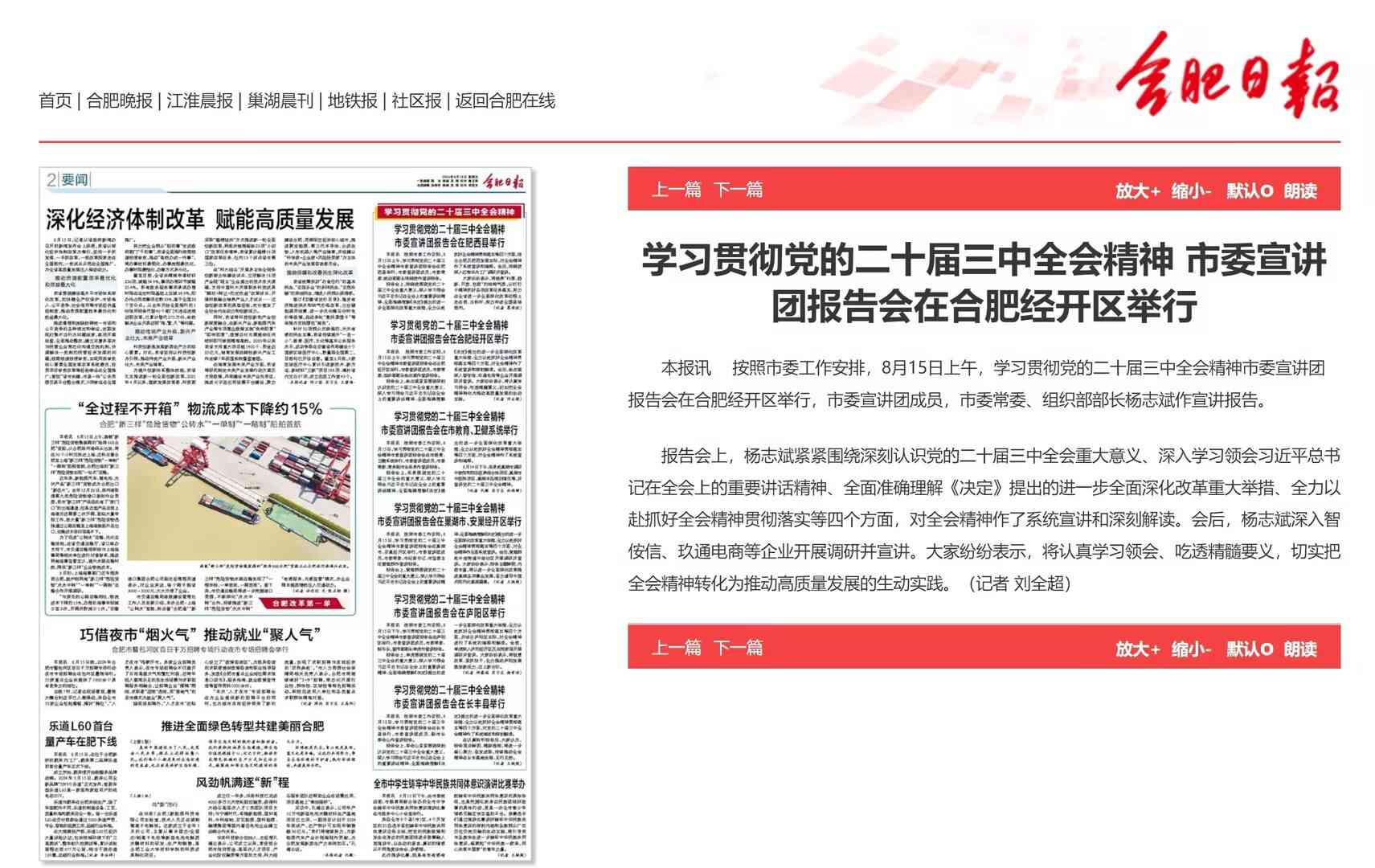 按照(zhào)市(shì)委工(gōng)作(zuò)安排,8月(yuè)15日(rì)上(shàn§g)午,學習(xí)貫徹黨的(de)二十屆三中全會(huì)精神市(shì)委宣講團報(bào)告會(huì)在合肥經開(kāi)區(qū)舉行(xíng),≠市(shì)委宣講團成員(yuán),市(shì)委常委、組織部部長(cháng)楊志(zhì)斌作(z∞uò)宣講報(bào)告。