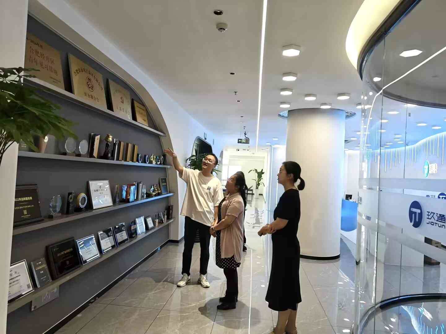 9月(yuè)5日(rì),合肥市(shì)商務局副局長(cháng)饒金(jīn)鳳、綜合處處長(cháng)張蕭蕖等領導$一(yī)行(xíng)莅臨玖通(tōng)。此次調研活動中,與會(huì)領導深入了(le)解了(le)玖通(tōng)的(de)運營模式和(hé)發展情況,為(wèi¥)玖通(tōng)宣貫了(le)最新惠企政策細則,對(duì)玖通(tōng)未來(lái)健康、可(kě)持續的(de)發展寄予厚望。