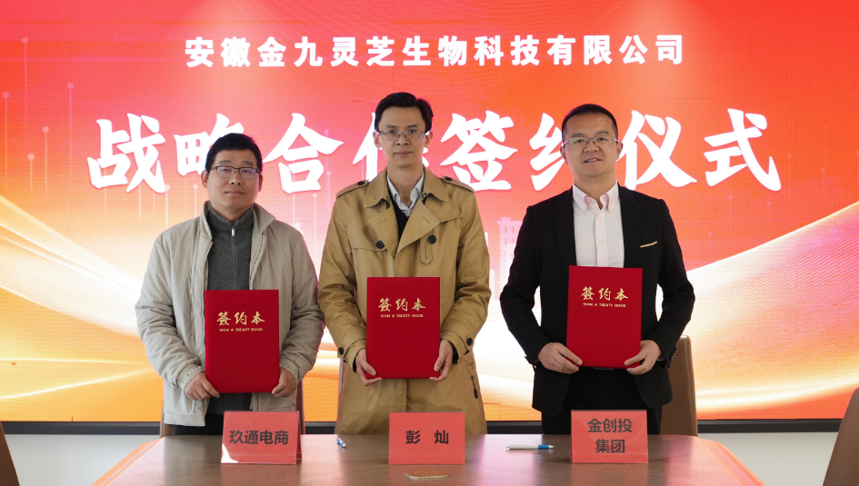 3月(yuè)13日(rì)上(shàng)午,玖通(tōng)與安徽金(jīn)創投控股集團、安徽中醫(yī)藥大(dà)學藥學院實驗中心主任,博導彭燦$教授在我司舉行(xíng)三方戰略合作(zuò)簽約儀式。共同發起成立安徽金(jīn)九靈芝生(shēng)物(wù)科(kē±)技(jì)有(yǒu)限公司,玖通(tōng)電(diàn)商董事(shì)長(cháng)肖峰、金(jīn)創投集團創始人(rén₽)胡鑫與安徽中醫(yī)藥大(dà)學彭燦教授代表三方簽署合作(zuò)協議(yì)。此次戰略合作(zuò)簽約标志(zhì)•著(zhe)三方将在藥食同源領域、食療滋補營養品、零食零售等多(duō)個(gè)領域展開(kāi)深度合作(zuò),共同探索食品養生(shēng)行(xíng)業(y®è)新未來(lái)。